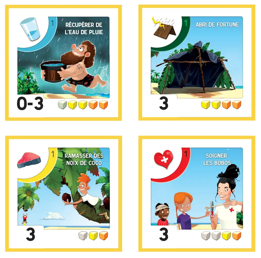 Dans un deuxième temps seulement, il sera temps d’envisager de s’échapper de l’île car le volcan de l’île gronde… et l’irruption est imminente. Ils devront alors gérer leurs efforts pour maintenir leur système de survie tout en construisant un « système de sauvetage » efficace et qui répond à 2 besoins fondamentaux : flotter… et avancer !
