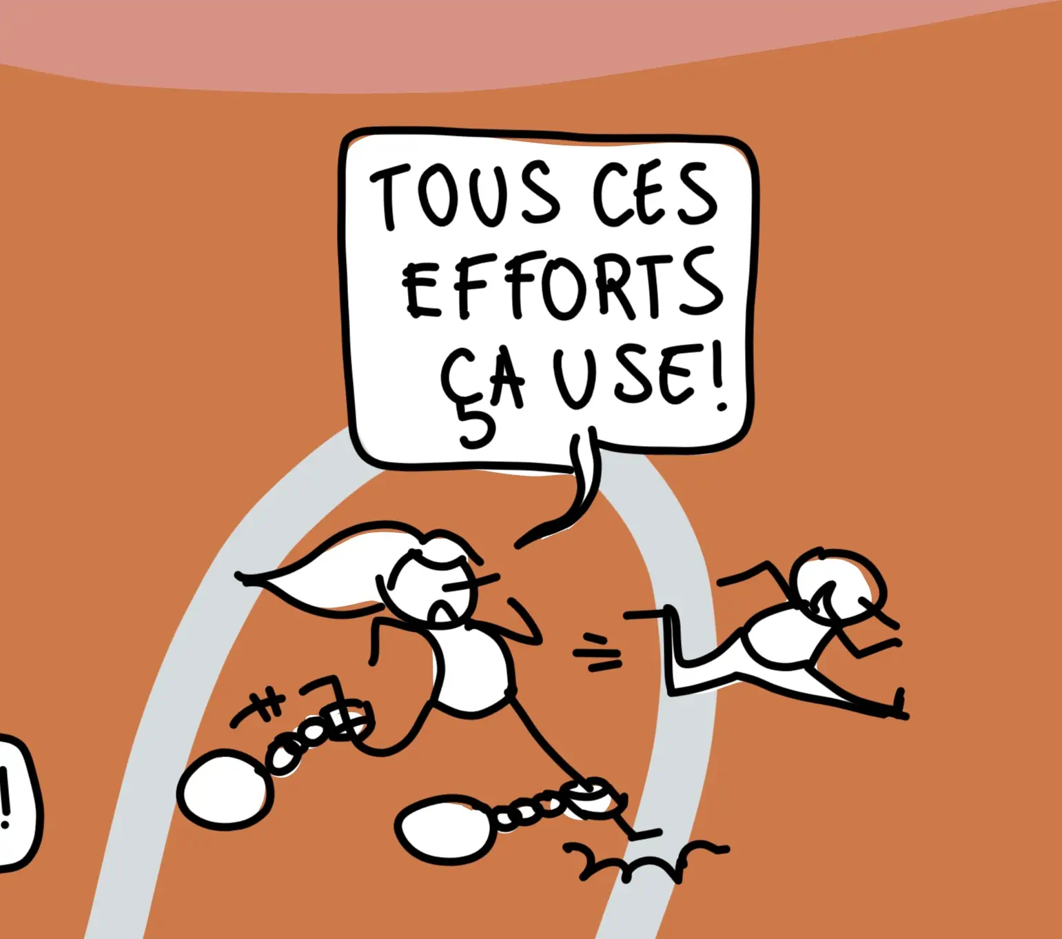Je dessinais presque en continu, tout en surveillant l’espace disponible, le rythme des prises de parole, et les connexions possibles entre les idées. Mais il y avait une complexité supplémentaire : distinguer la scène racontée du message à retenir. Certaines intervenantes donnaient des exemples concrets suivis de leur analyse. D’autres partageaient simplement un message direct : “Il faut être forte.” Mais sans histoire pour le soutenir.